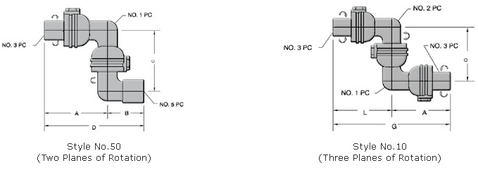 Mone wing union and two style 50 or style 10 swivel joints with threaded ends